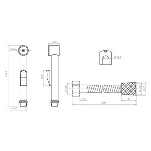 Maneral Bidet 1 función con botón On/Off, soporte y flexible de 150 cm.