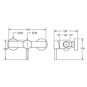 Manilla con giro en 90° que permite mezclar la temperatura del agua.