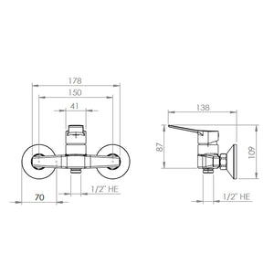 FUNCIONAMIENTOManilla con giro en 90° que permite mezclar la temperatura del agua.CONEXIÓNPor 2 excéntricas S G 1/2”.TIPO DE CIERRECartucho Cerámico 35 mm.MATERIALCuerpo: Latón.Manilla Metálica.CONSUMO*<12 L/min a 3 bares.NORMATIVACumple con norma Chilena Nch 700-2011.INCLUYE2 Excéntricas, 2 campanas