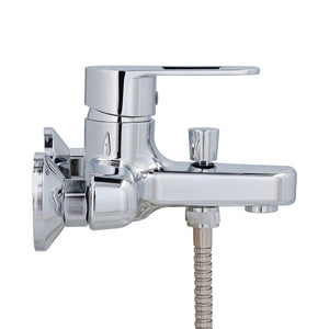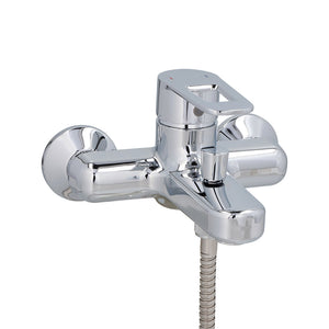Manilla con giro en 90° que permite mezclar la temperatura del agua.