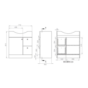 DESCRIPCIÓNDiseño con manillas de aluminio.Mueble de MDP con una puerta y dos cajones (incluye repisa interior)Bisagras con sistema "Cierre Suave".