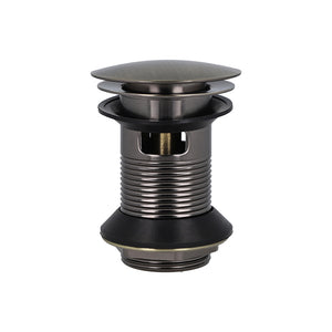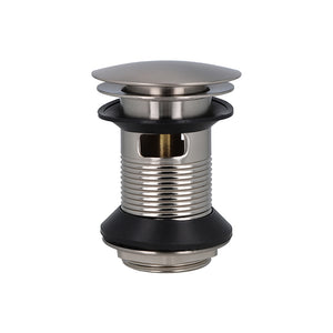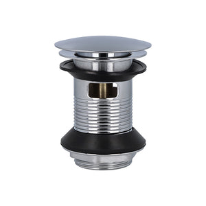 DESCRIPCIÓN Desagüe para lavamanos con sistema Pop-Up con rebalse, sin tubería ni tuerca de salida. La goma cónica tiene un diseño diferenciador, con una perforación roscada que brinda un sello seguro libre de fugas. Fabricado en acero inoxidable AISI 304 (incluido su resorte interior), que garantiza alta calidad, flujo e higiene.