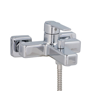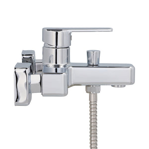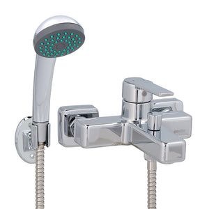 Manilla con giro en 90° que permite mezclar la temperatura del agua.