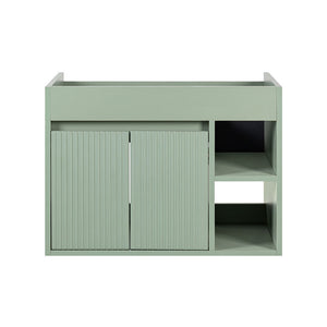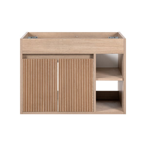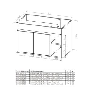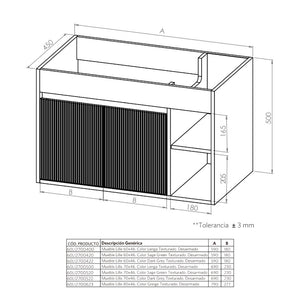 Mueble de baño suspendido con dos puertas texturadas y dos repisas.
