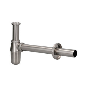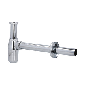 Sifón para lavamanos metálico con tubo de desagüe de 30cm. Fabricado en aleación de Zinc, con terminación en cromo pulido. Sellos cónicos de goma NBR. CONEXIÓN Terminal HE Gl 1/4". Salida 32 mm. MATERIAL Aleación de Zinc INCLUYE Embellecedor