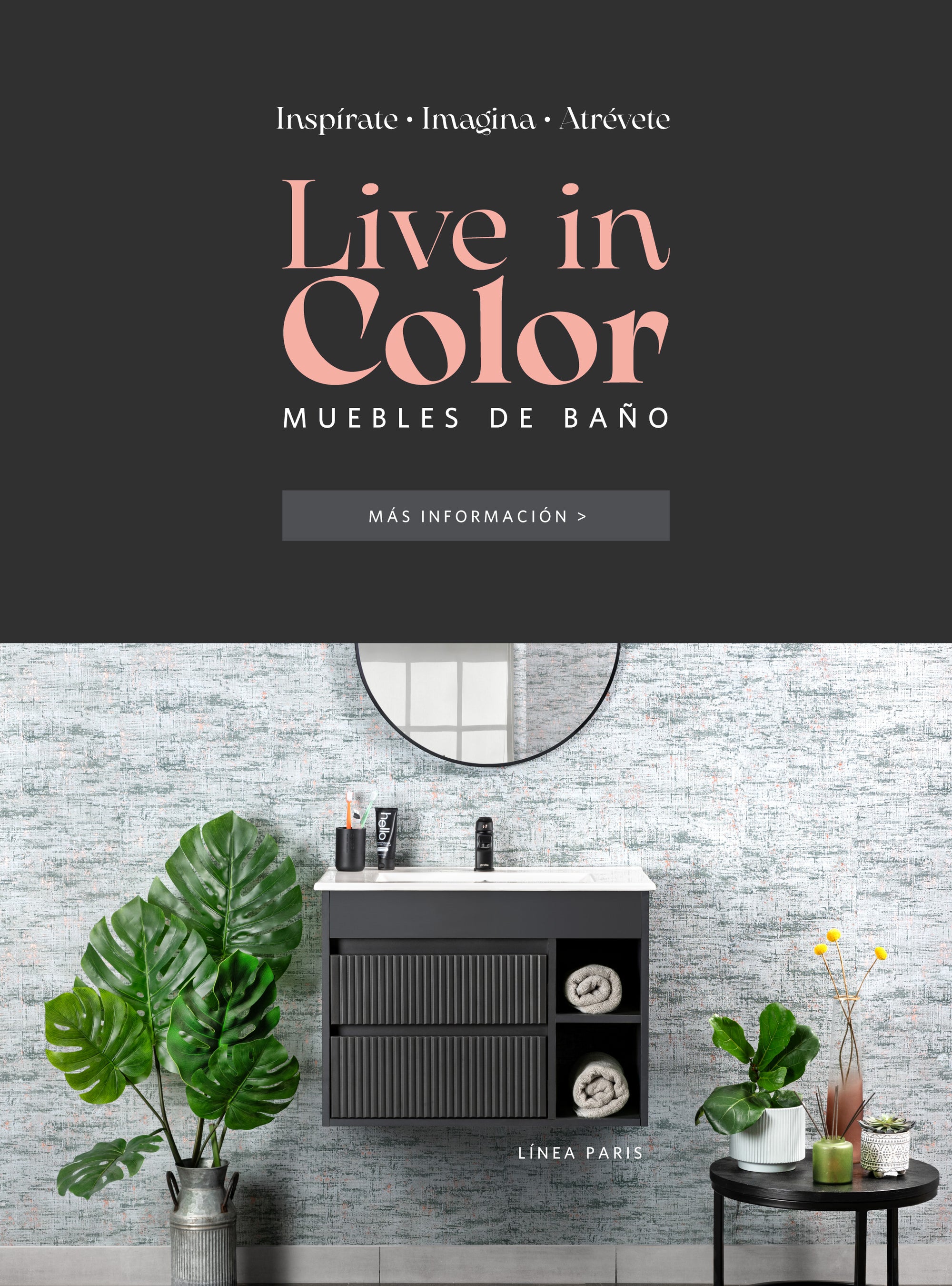 Inspírate con los nuevos muebles de baño Stretto, Imagina un espacio diferente, donde cada rincón te encante, y Atrévete a vivir nuevas sensaciones con sus vibrantes colores y texturas. Transforma tu baño y haz de cada día una experiencia única.
