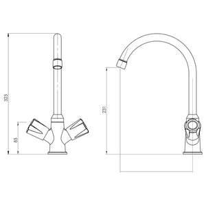 Apertura a favor de manecillas del reloj (agua caliente) y en contra de las manecillas del reloj (agua fría).