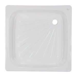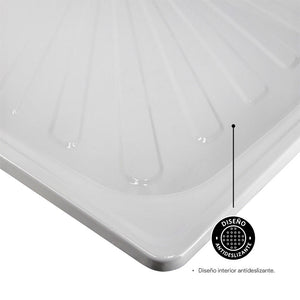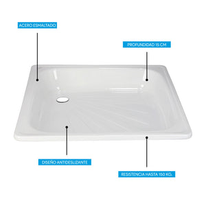 DESCRIPCIÓN Fabricado en acero esmaltado blanco. Incorpora un borde perimetral para la evacuación eficiente del agua y una superficie antideslizante para un uso seguro.